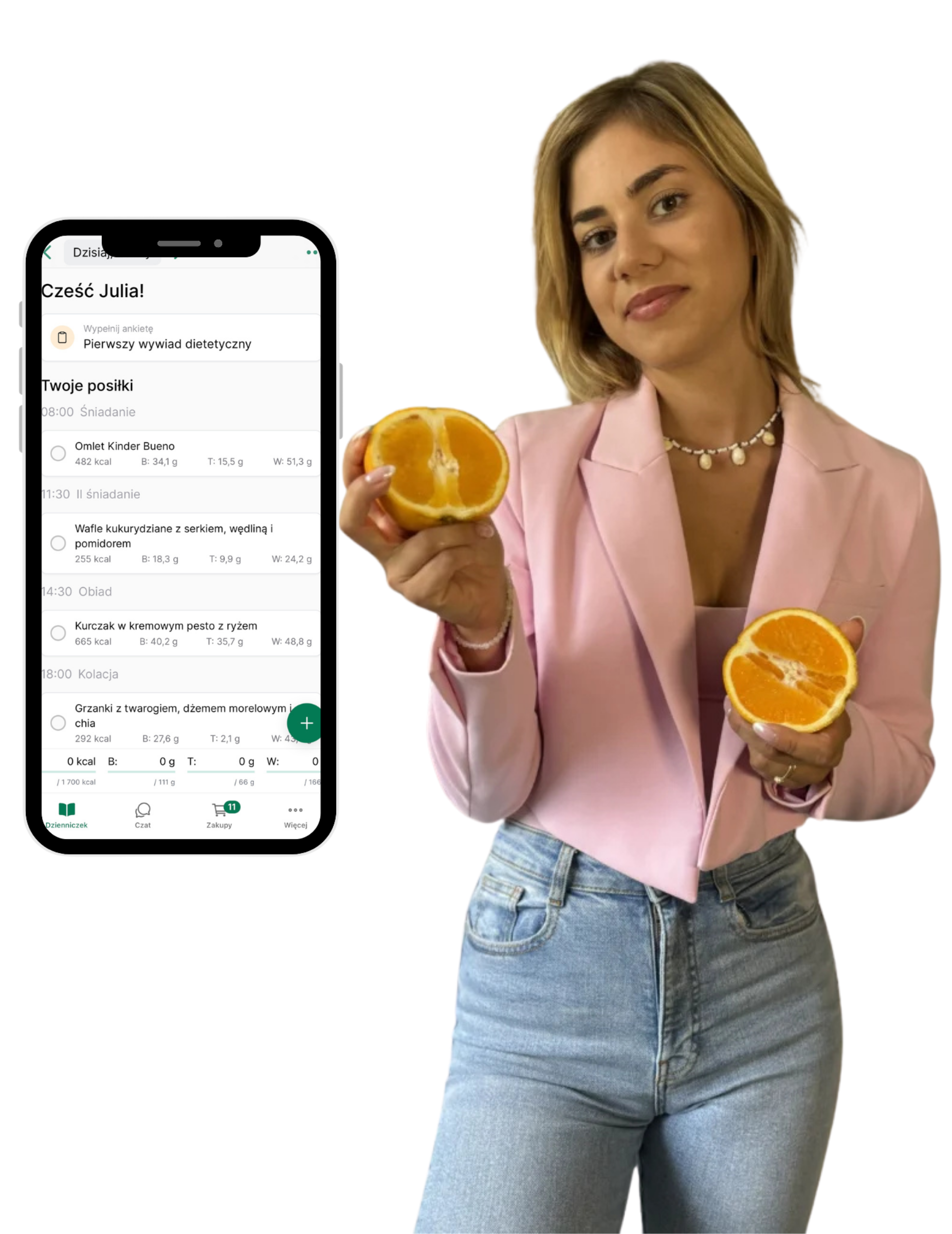 Indywidualna dieta, plan suplementacji i raporty co 2 tygodnie ze stałym kontaktem z dietetykiem klinicznym.