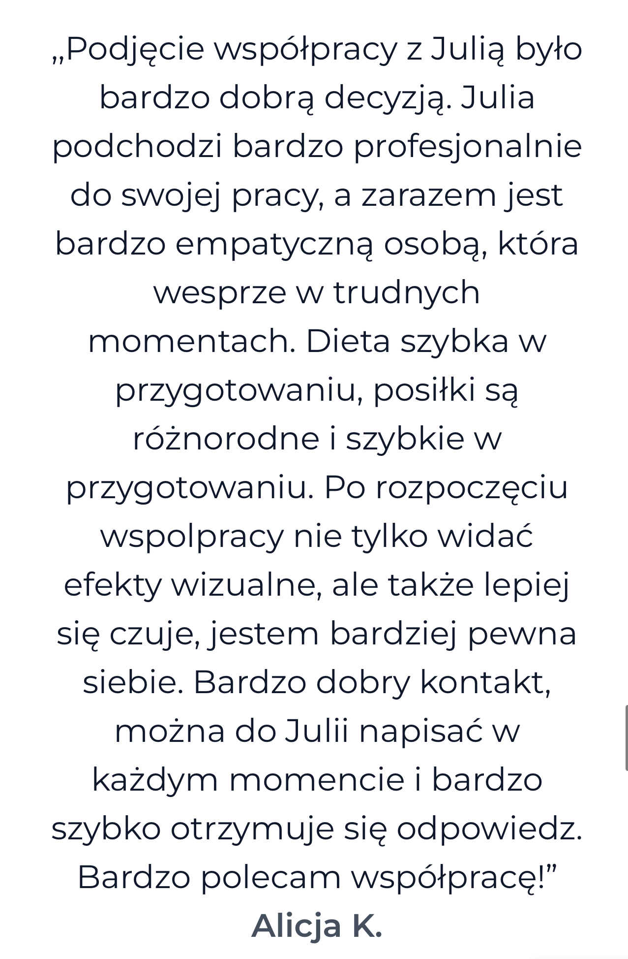 Pełne wsparcie dietetyczne i edukacyjne przez cały okres współpracy.