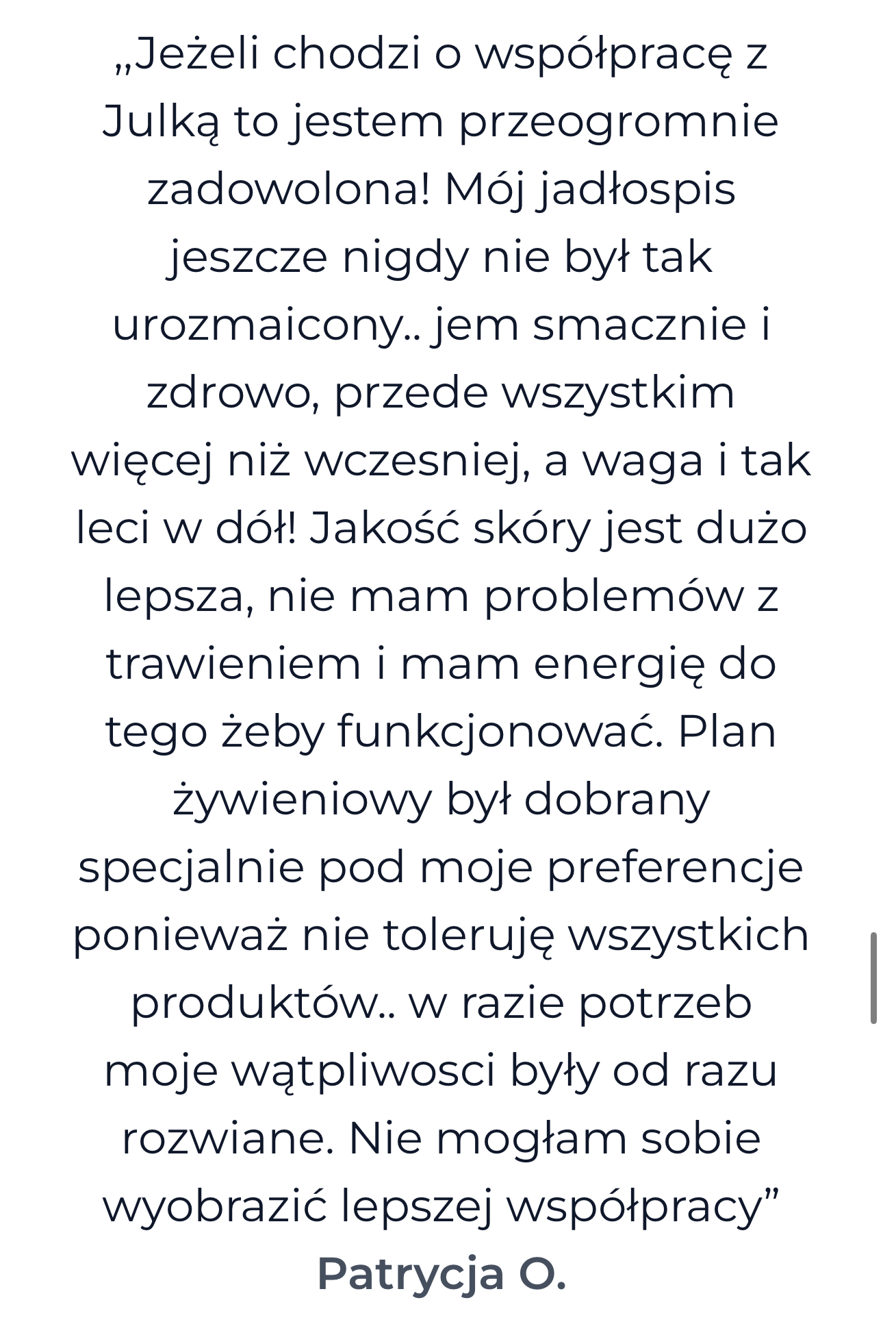bieżące wsparcie na czacie w aplikacji dietetycznej przez cały okres współpracy.